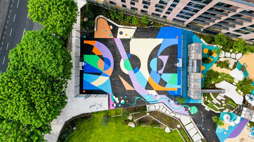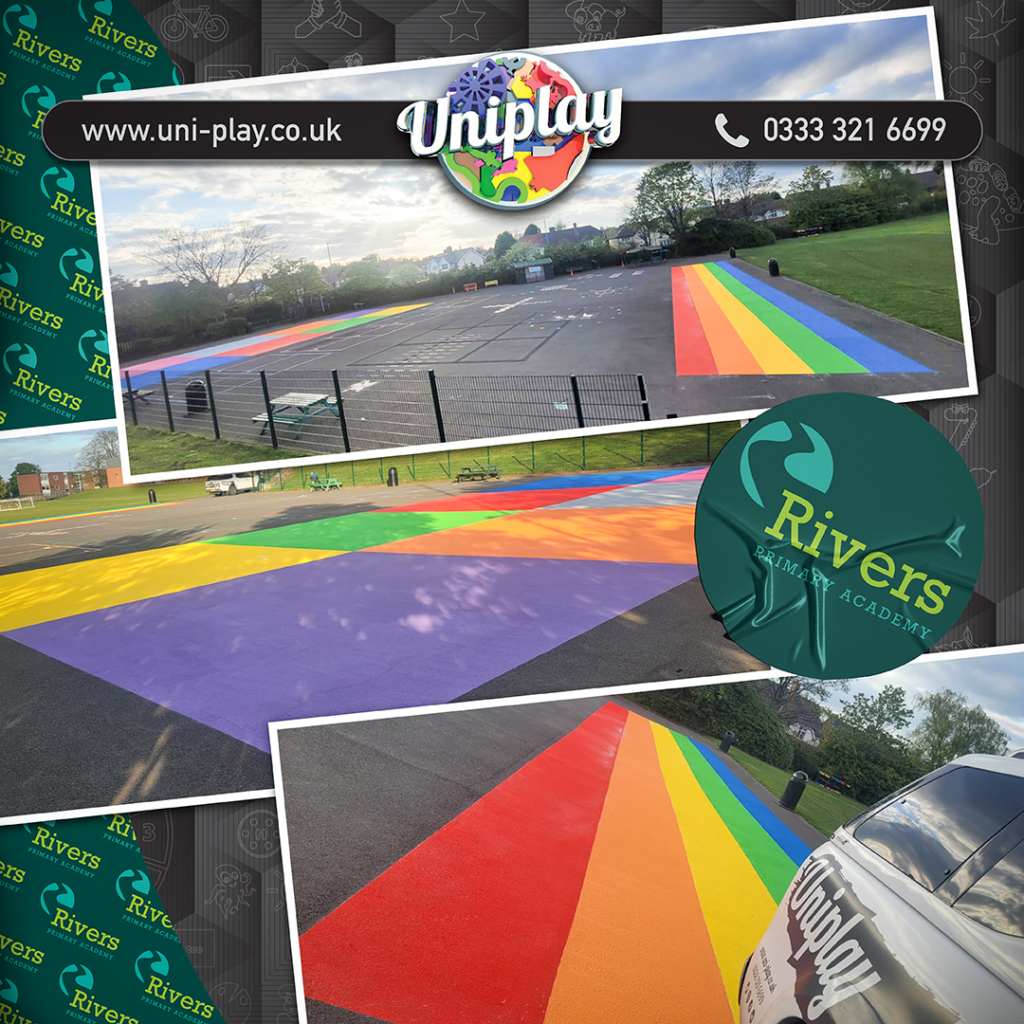 A playground can have various elements, including play equipment, seating areas, and playground markings. Our focus at Uni-Play is to enhance the playground floor with engaging and educational markings.