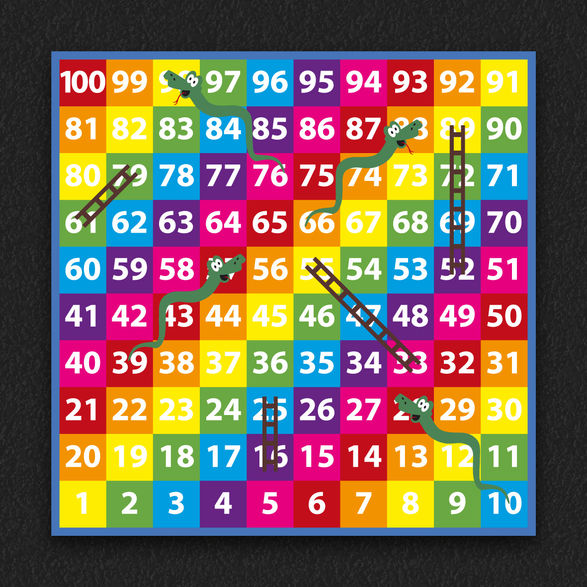 A colourful twist on a classic board game! Our 1-100 Snakes & Ladders playground marking is highly vibrant and is likely to attract attention from children during playtime. Use beanbags, counters, different objects (or even yourselves!) to move along the board. Get multiple people involved and have a completive game on the playground. Get in touch to book your free site visit with us.
