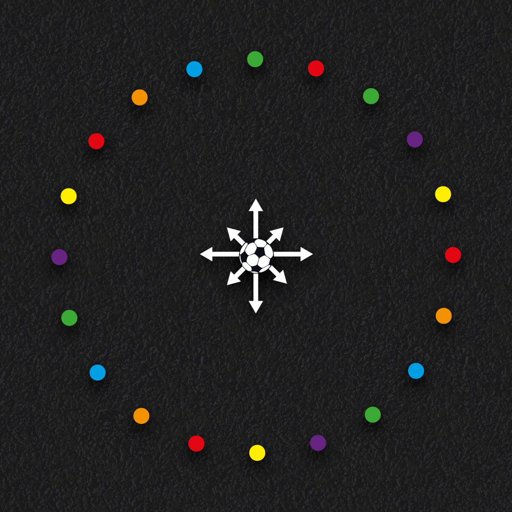 The Ball Pass & Mirror Me are the ideal markings for groups of children, developing social interaction, communication and gross motor skills while having fun.